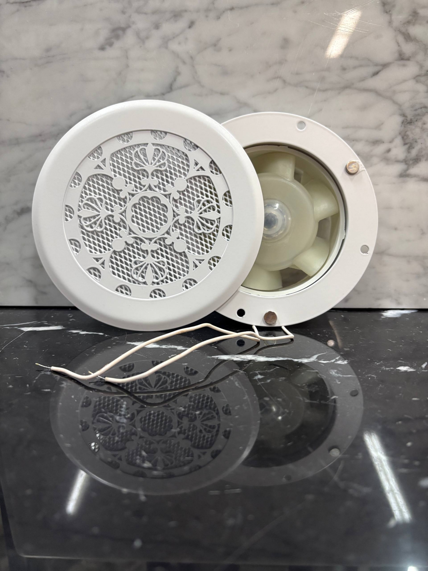 Диффузор на магнитах с вентилятором ТД100 белый цветочный орнамент 100 мм